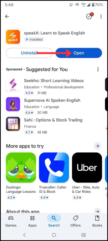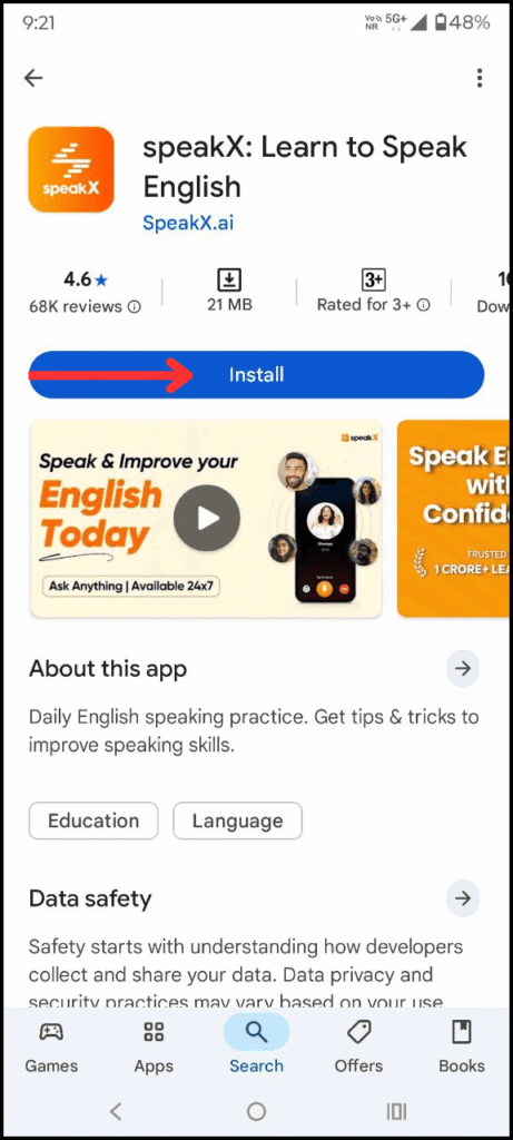 नीचे दिए गए स्टेप्स को फॉलो करके आप SpeakX ऐप के जरिए आसानी से AI से इंग्लिश सीखना शुरू कर सकते हैं: