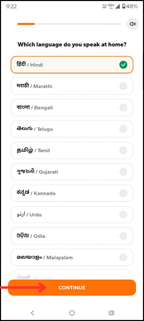 स्टेप 3. अपनी भाषा चुने और CONTINUE पर क्लिक करें।